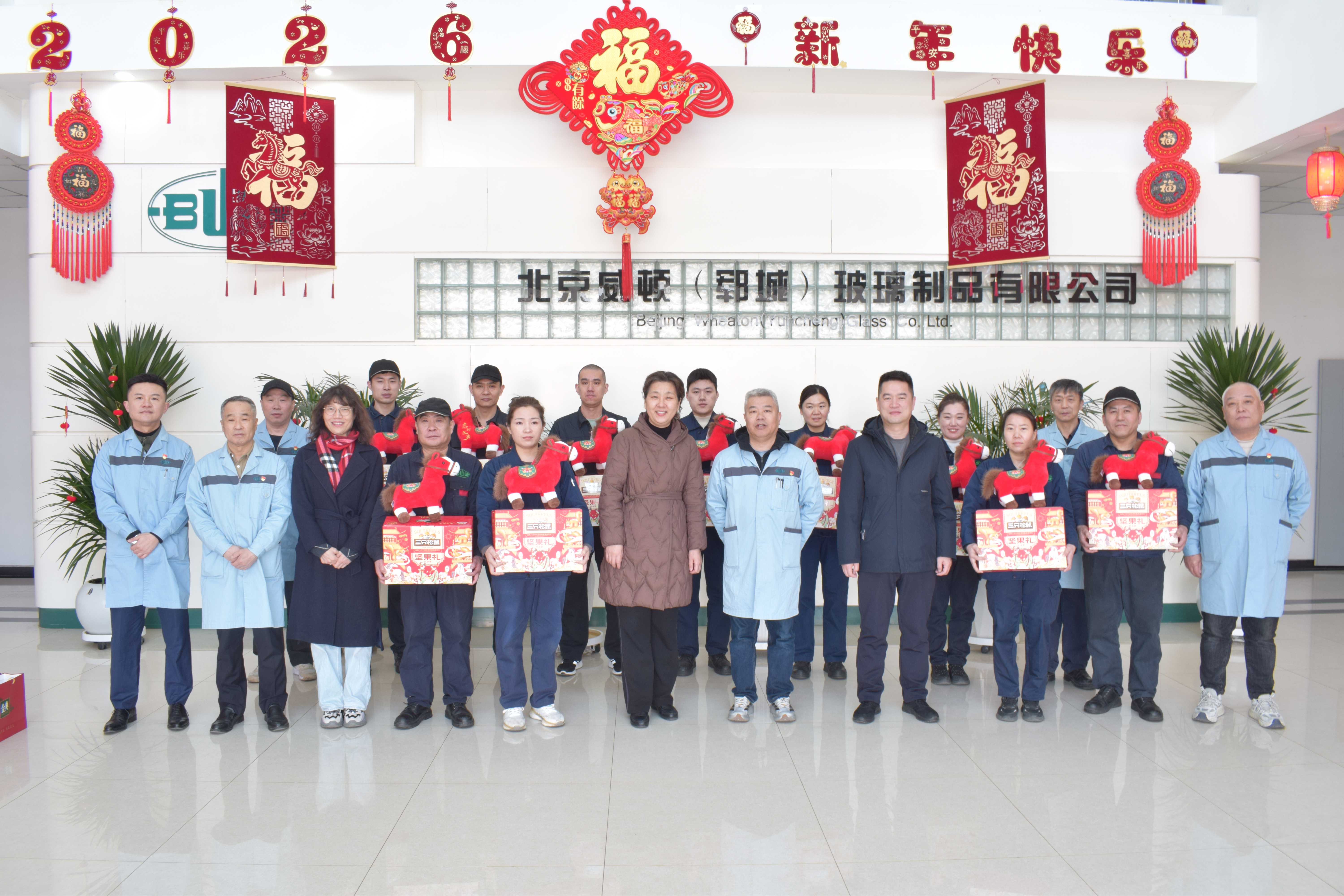 在威頓(鄆城)公司,玻璃集團領導深入生產一線,為在崗職工送上新春慰問品與節日祝福,叮囑大家要統籌好生產與安全。隨后,與公司管理團隊座談,詳細了解2026年重點工作計劃、新產品研發及團隊建設情況,對大家扎根異地、攻堅克難的精神給予充分肯定。中午,領導們來到職工食堂,與職工一起包餃子、話家常,共慶新春。