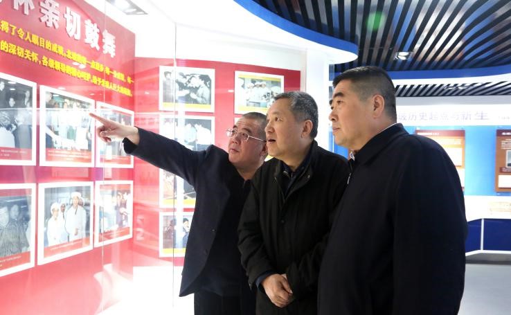 2019年4月一輕控股公司黨委書(shū)記、董事長(zhǎng)蘇志民陪同國(guó)家市場(chǎng)監(jiān)督管理總局局長(zhǎng)張茅參觀北玻展室