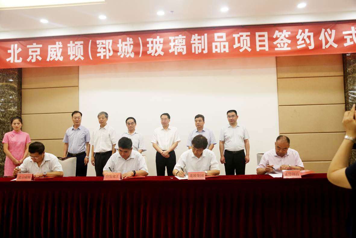 北京玻璃集團公司,北京威頓玻璃制品有限公司,鄆城魯發化工,鄆城正華玻璃四方代表共同進行了簽約。