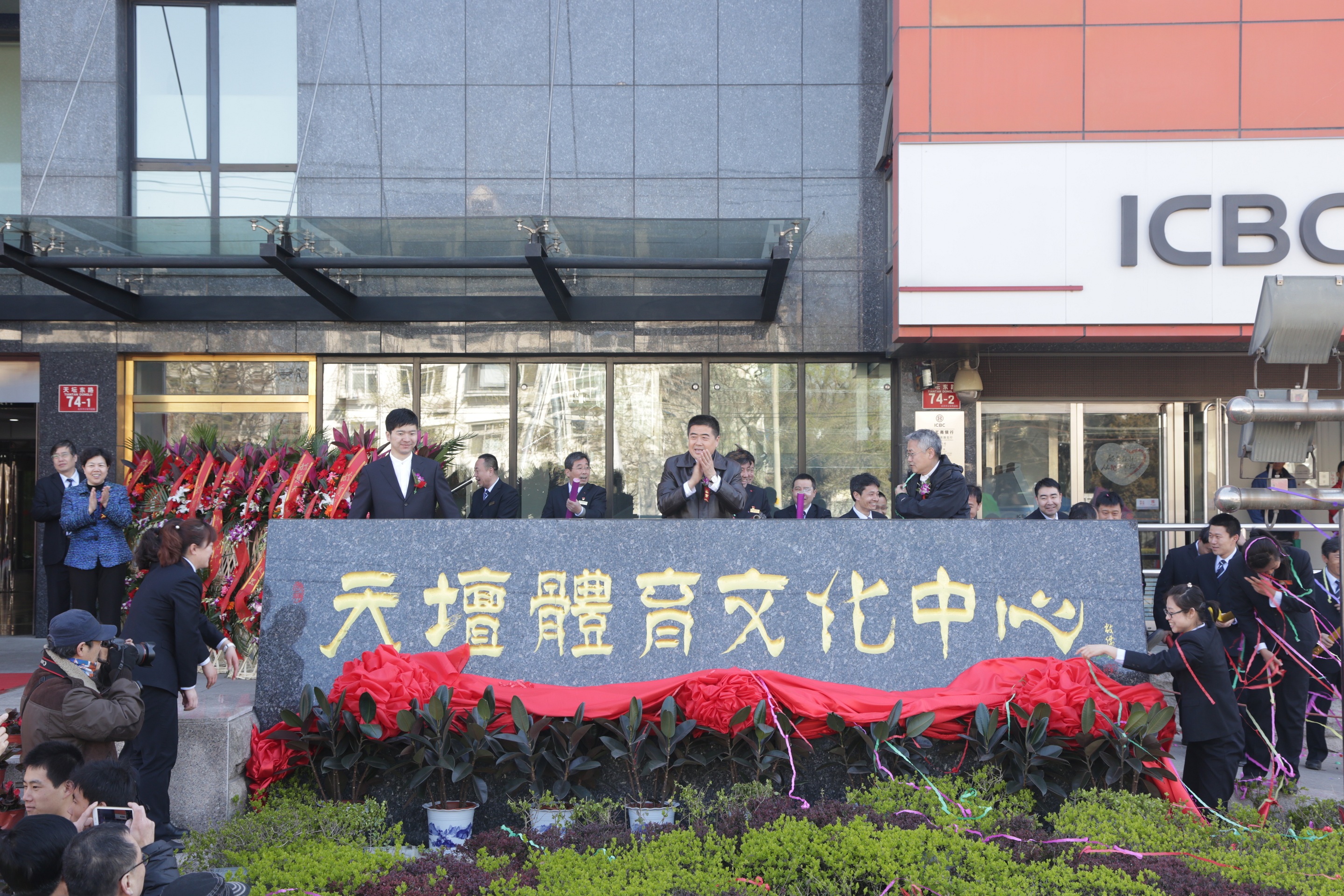 最后,一輕控股有限責任公司黨委書記、董事長蘇志民,東城區體育館路街道工委書記陳志堅,北京星洵文化傳播有限責任公司總經理趙守洵共同為天壇體育文化中心揭牌。