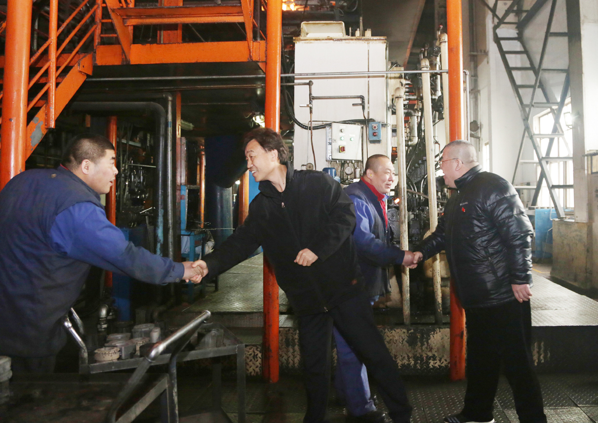 在六零八廠鍋爐房、配電室,在鑫企旺中心幸福、紅橋?qū)懽謽呛褪程冒啵瘓F(tuán)公司領(lǐng)導(dǎo)一一與大家握手寒暄,將溫暖、關(guān)懷與祝福送給一絲不茍地堅(jiān)守崗位的職工。