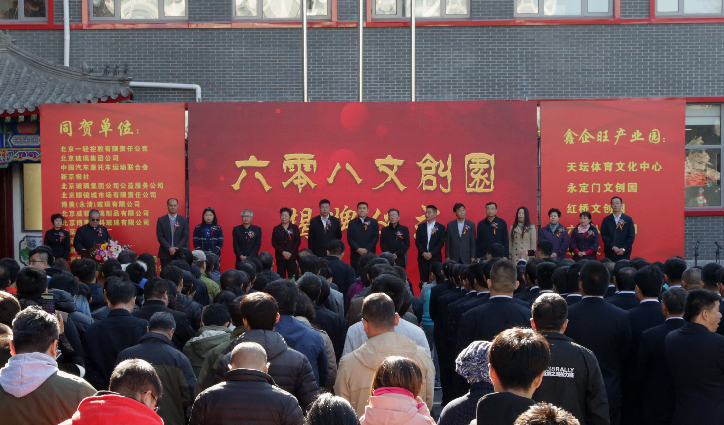 揭牌儀式上,一輕控股公司黨委書記、董事長蘇志民,黨委副書記洪艷華,東城區人大常委會副主任王兆康,東城區人民政府副區長葛俊凱,政協東城區委員會副主席畢博聞,集團公司黨委書記、總經理張希雨共同為六零八文創園揭牌。